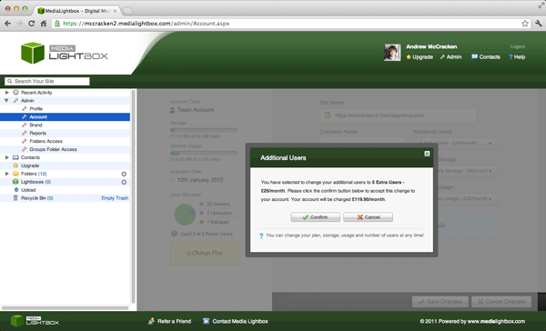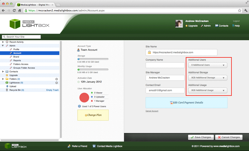 • Below the three additional buttons (additional users, additional storage and additional usage) are drop down menus for each option.