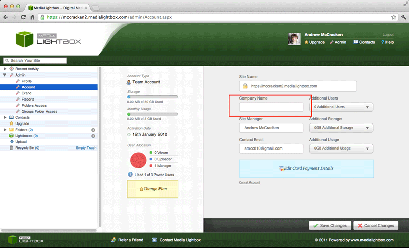 • Enter your company name and Click on the 'save changes' button