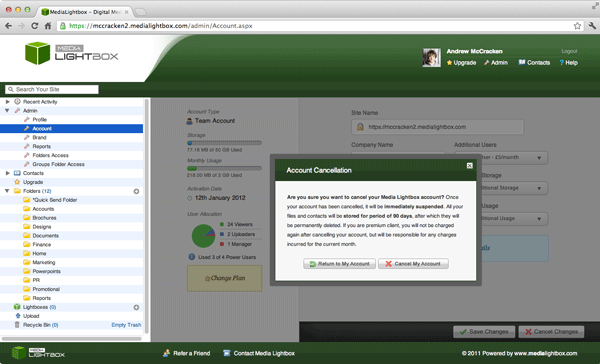 If you are sure you want to cancel and terminate your Media Lightbox account please follow the simple steps below: