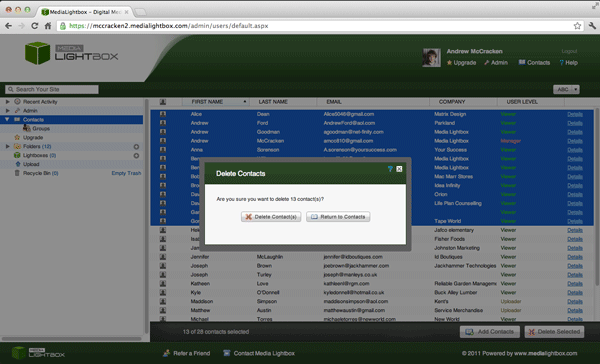 - If you are happy with the selection made click 'Delete Contact(s)