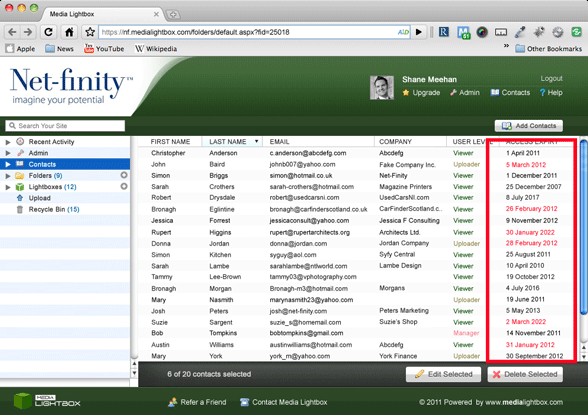 - The out of date contacts will be highlighted in red