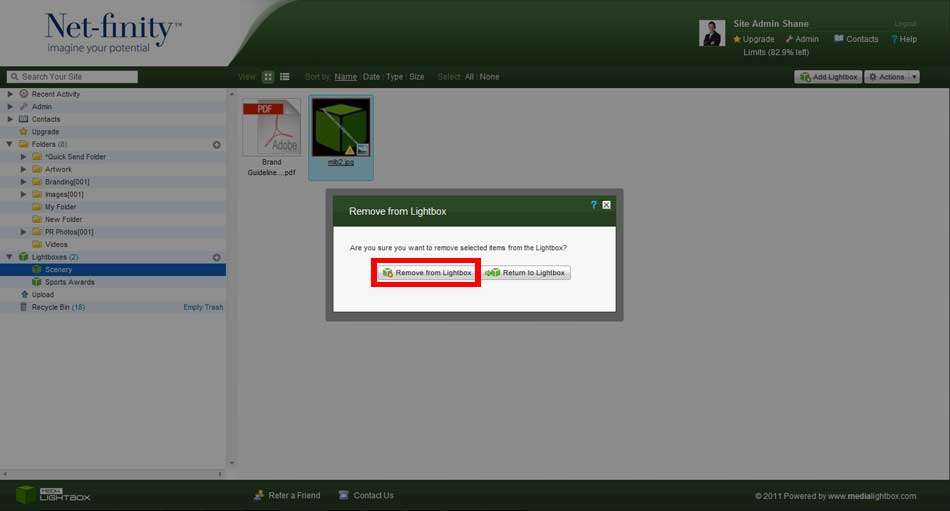 Please note that removing files from a lightbox will not delete the files from the system, but will simply remove its’ link to the lightbox.
