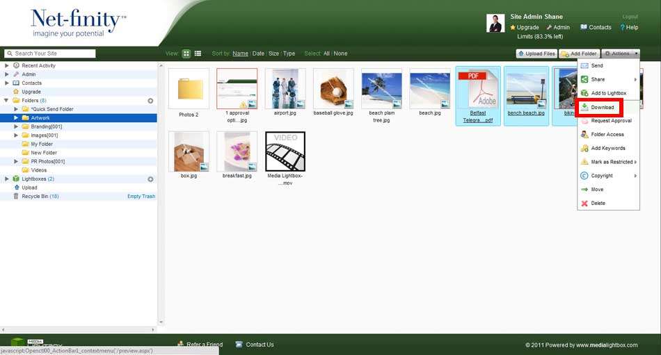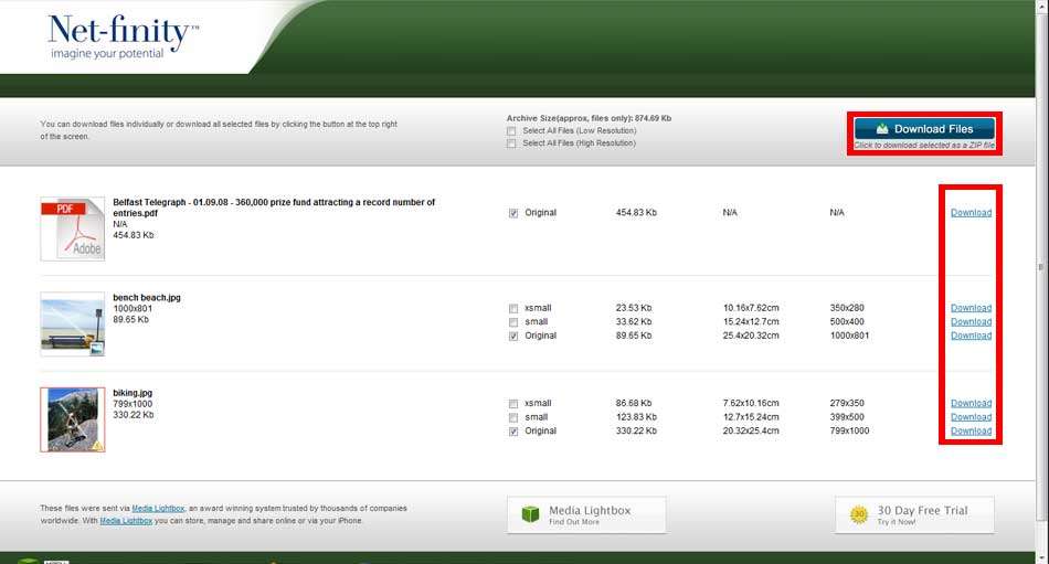 The following screen will appear. Select a download option. In the case of image files, the system automatically splits the files into different size formats providing you with the option to download the original source file or smaller alternatives of the original file.