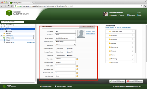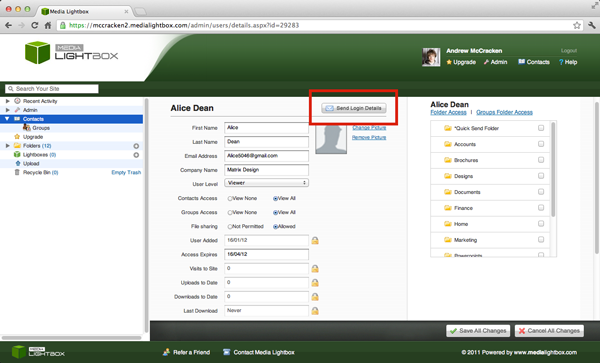 This page shows how to Edit Contact Information, Edit Folder Access and Send Contact Details and edit multiple contacts, see the relevant steps below:
