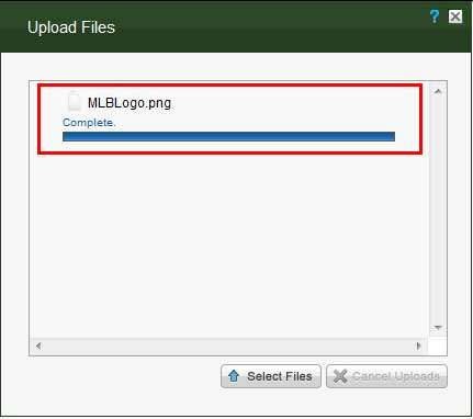 While a file is uploading, you can cancel the upload by clicking the “X” symbol.  A prompt will be displayed when the file has finished uploading.