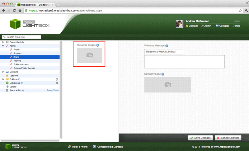 - Below 'Welcome Images' click on the grey box with a camera icon.